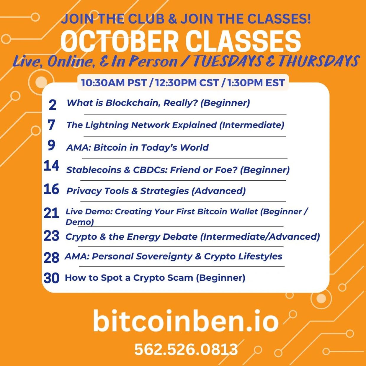 We have several qualified consultants for one-on-one help with understanding Bitcoin, cryptos, and the blockchain. Club members will have access to these consultants for a special club hourly rate. In the future, accredited classes will be offered on a limited basis for anyone who wants to become a paid club consultant.